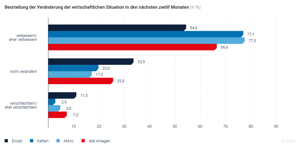 Alle Marktsegmente betrachtet, sehen zwei Drittel der Studiobetreiber mit einem positiven Blick in die Zukunft. Wobei sich Betreiber von Ketten- und Mikrobetriebe im Vergleich zu Einzelstudios optimistischer geben.