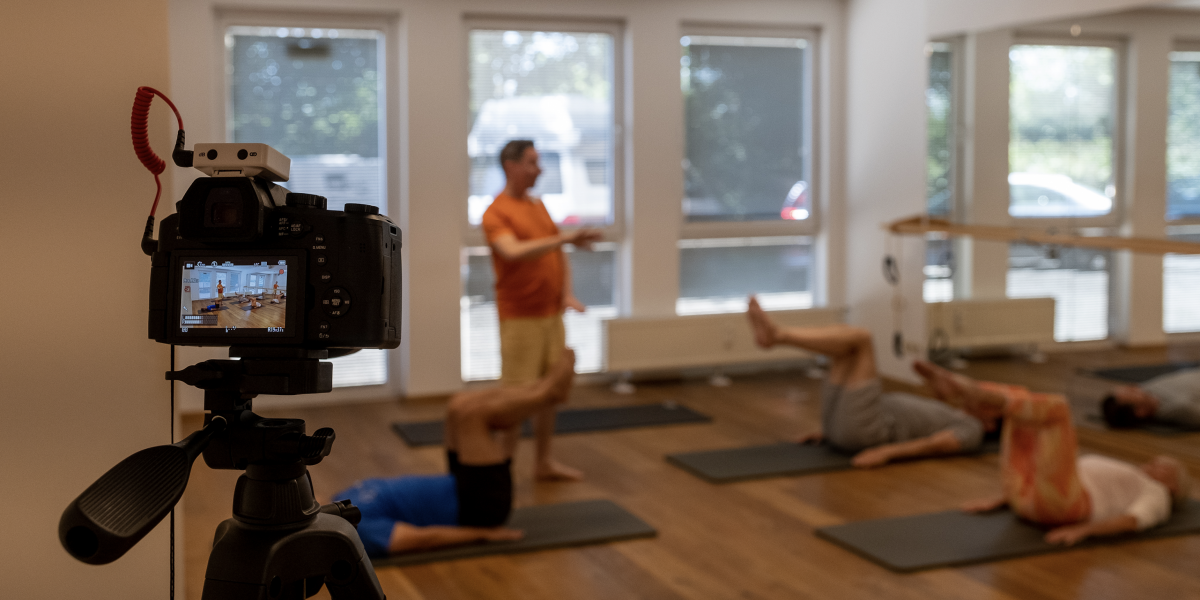 KB: Wir schauen ja gerne in die USA und empfinden den Blick dorthin als die Zukunftsvision für Europa. In der Tat ist man dort immer noch mit vielen Strömungen weiter als bei uns. In den USA gibt es „Pilates Anytime“, eine Plattform mit über 3.500 abrufbaren Videos zum Thema Pilates. Und ich habe mich gefragt, warum nicht auch hier, in Deutschland? Zeitgleich sprach mich eine Kundin an – Ingeborg Rieck, genannt Ingo. Ingo ist eine begeisterte Selfmade-Kamerafrau mit großer Affinität zu modernen Medien und Technik.
